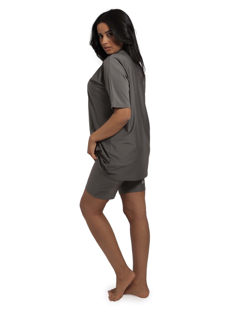 De Dania semi-burkini combineert stijl en comfort – ideaal voor je strandvakantie. Deze set met korte mouwen en een biker short biedt volledige bedekking en bewegingsvrijheid in een moderne, aansluitende pasvorm look.
