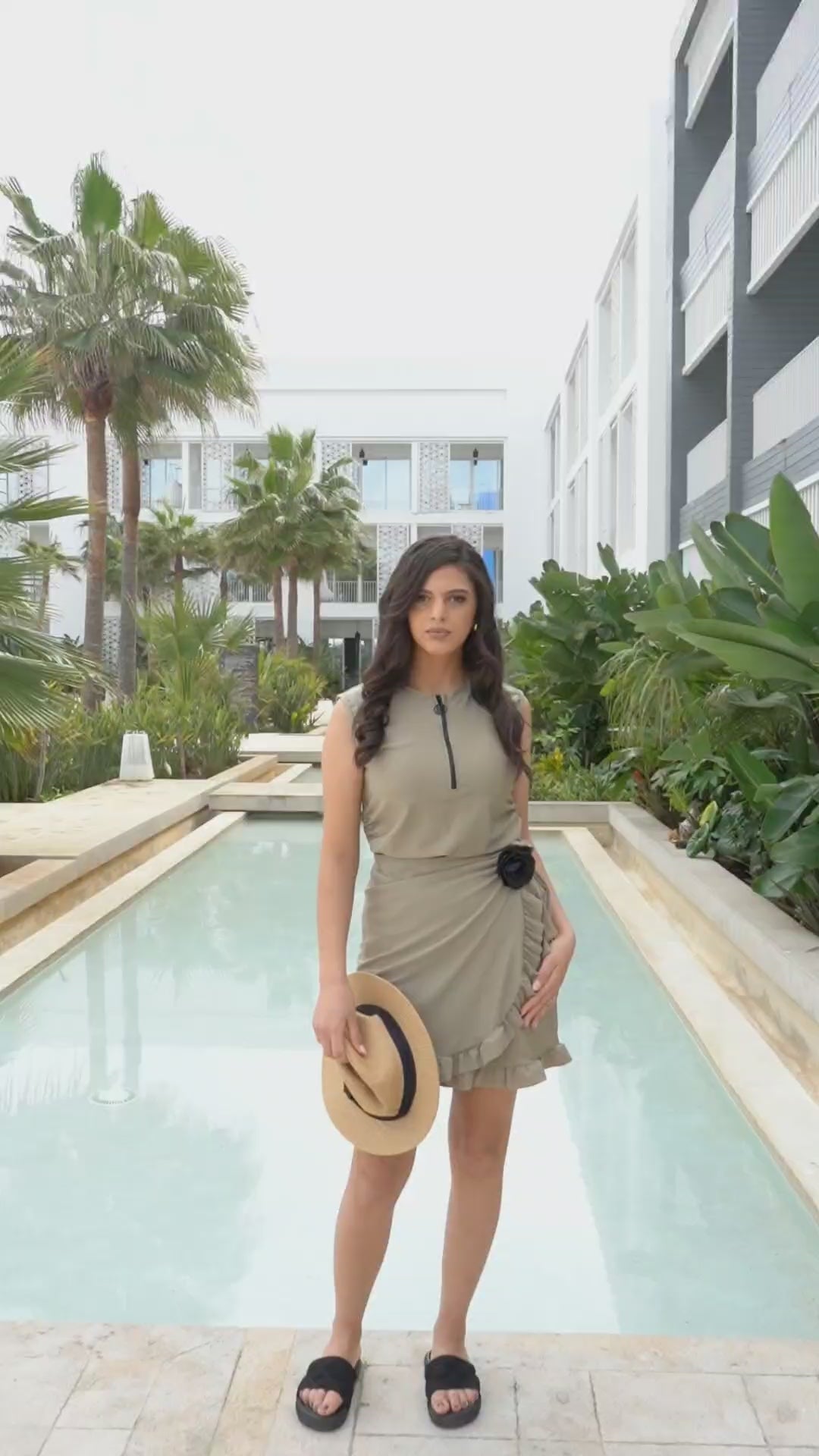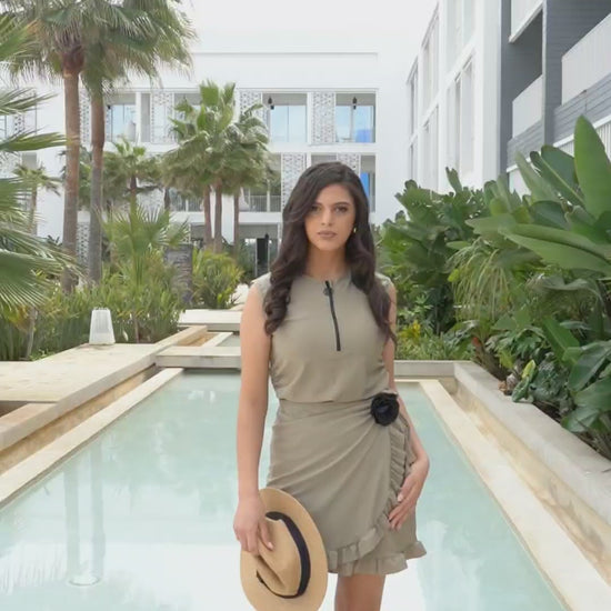 Bij aankoop ontvang je een beige tankini set cadeau (zwempak + broekje). Draag dit badpak als basis onder de semi-burkini voor extra comfort en bescherming.