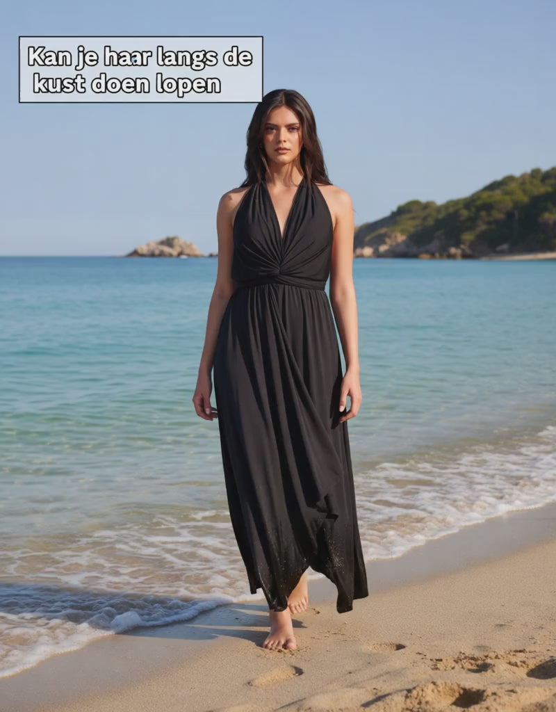 Deze multifunctionele wrap dress is dé perfecte toevoeging aan je zomergarderobe. Dankzij het slimme ontwerp kun je hem op maar liefst 23 verschillende manieren dragen – van halterjurk tot asymmetrische wikkeljurk, strapless, met mouwen en meer. Speel met stijl, pas aan op je mood.
